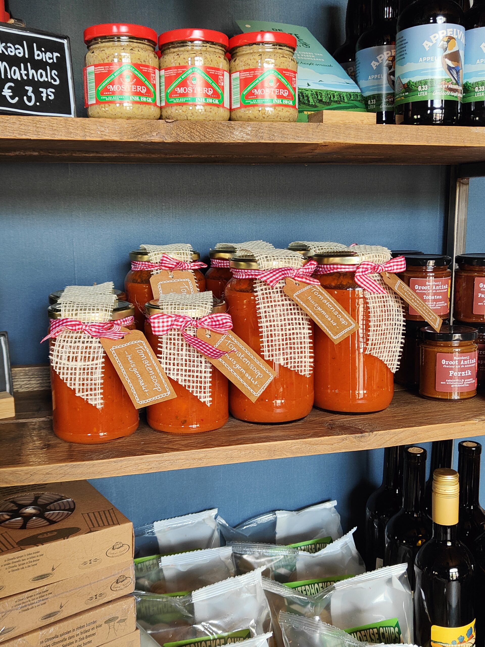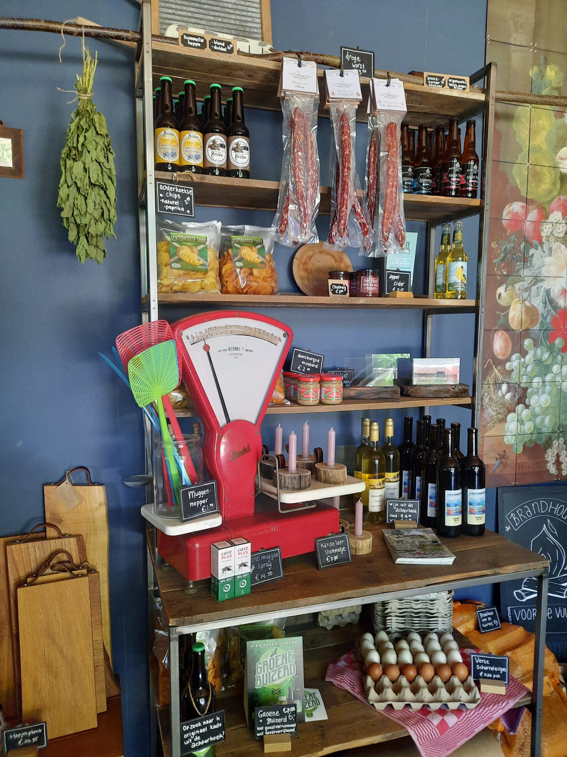 Bezoek ons gezellige winkeltje met mooie producten uit de streek. Een lekker stukje kaas of worst voor bij de borrel, een wijntje uit de Achterhoek of proef de heerlijke huisgemaakte producten zoals quiche of tomatensoep. En niet te vergeten de kakelverse eitjes van onze kippen. Ook staan er voor de receptie heerlijke kruiden en sla om te plukken.